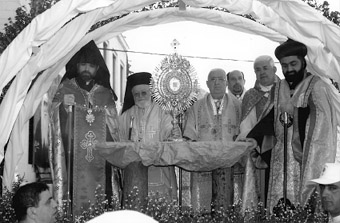 س: هل كنت تعلم أنك مرشح للأسقفية؟ وكيف تم انتخابك لهذه المسؤولية؟ ج: كلا، لم أكن أعلم بذلك. غير أن نشاطاتي وإندفاعي في الخدمة العامة كونا لي رصيداً كبيراً لدى المحبين الكثر. ففي «حوش الأمراء «عملت مع الأب حنا سليمان في تأسيس دار الصداقة سنة .1979 كما كنت أعمل كمرسل متجول في كل رعايا الأبرشية الزحلية: أعظ الرياضات الروحية، أحتفل بقداديس خاصة للمناسبات أو في المدارس، وأنظم المسيرات الشعبية وبخاصة إلى تمثال العذراء، وأعطي دروس التعليم المسيحي في المدارس الرسمية والخاصة. حتى صرت معروفاً في كل مؤسسات زحلة وصديقاً لكثيرٍ من أبنائها. وفي هذه الفترة، كنت سعيداً جداً. وعندما إستلمت إدارة دار الصداقة خلفاً للأب حنا سليمان، وهي المؤسسة المخلصية الإجتماعية، عملت باندفاع لدفعها إلى الإكتمال. فنشطت «حركة صديقات الدار«، وأصدرت نشرة خاصة، وتوفقت في شراء قطعة أرض في موقعها الحالي (ضهور كسارة) من أموال الرهبانية المخلصية. كما كلفني راعي الأبرشية يومها المرحوم المطران أغسطينوس فرح إدارة مجلة ''الرسول'' التي كانت تصدر دورياً عن المطرانية. وعندما توفي المطران فرح، بعد ست سنوات من أسقفيته، بتاريخ 31 آذار 1983، بدأ الحديث في زحلة عن إختيار خلف له. أما أنا، فلم يخطر ببالي أنني سأكون خليفته، لأنني أعتبر طريقة حياتي وعملي وتفكيري غير مرغوبة من الإكليروس. ولكن، حدث ما لم يكن بالحسبان. ففي ليلة ذكرى رسامتي الكهنوتية 13 حزيران، كنت أحتفل بقداس في كنيسة الرعية في حوش الأمراء، وطلبت من الشعب أن يصلّي لكي يوفق السينودوس المقدس الملتئم في الربوة ليختار الخلف المناسب. وبعد القداس، أتاني إتصال هاتفي من المطران المرحوم نقولا الحاج أن أحضر في الغد إلى الربوة مكان إلتئام السينودوس. ولم أفهم الهدف الذي قاله لي من هذه الدعوة. وفي اليوم التالي، ذهبت إلى الربوة ومعي رفيق العمل في دار الصداقة الأب سليمان جرجورة الذي تركته يقود سيارتي «البيجو 504« ولدى وصولي إلى الربوة، بدأ المستخدمون يهنئونني بأنني انتخبت «مطراناً« على زحلة. وكان أول من إستقبلني على الباب الأب بطرس حداد الذي قبلني في الإكليريكية سنة .1941 ودخلت إلى قاعة السينودوس المقدس، فسألني غبطة البطريرك مكسيموس الخامس حكيم: «هل أقبل أن أكون مطراناً على زحلة«؟ فأجبت «بالقبول«، متكلاً على نعمة الله الذي إختارني بواسطة السينودوس المقدس. وهكذا بدأت مرحلة جديدة من حياتي. وقد عم الفرح جميع أبناء زحلة وخاصة حوش الأمراء، وتهافت علي رجال الصحافة والإعلام، حيث أقمت تلك الليلة مع إخوتي أبناء الرهبانية المخلصية. وعدت في اليوم التالي إلى حوش الأمراء، وحظيت بإستقبال شعبي كبير. وطيلة ثلاثة أيام، إستمر تدفق الأصدقاء المهنئين، وتمنياتهم لي بالنجاح. وكان هذا حافزاً قوياً لي لأنطلق في تحقيق رسالتي الجديدة، متخطياً المصاعب الكبيرة الناتجة عن الأوضاع الأمنية التي كانت تعيشها المنطقة نتيجة الحرب الداخلية وإنقسام الشعب اللبناني وخطر الإجتياح الإسرائيلي المخيم على الأجواء.